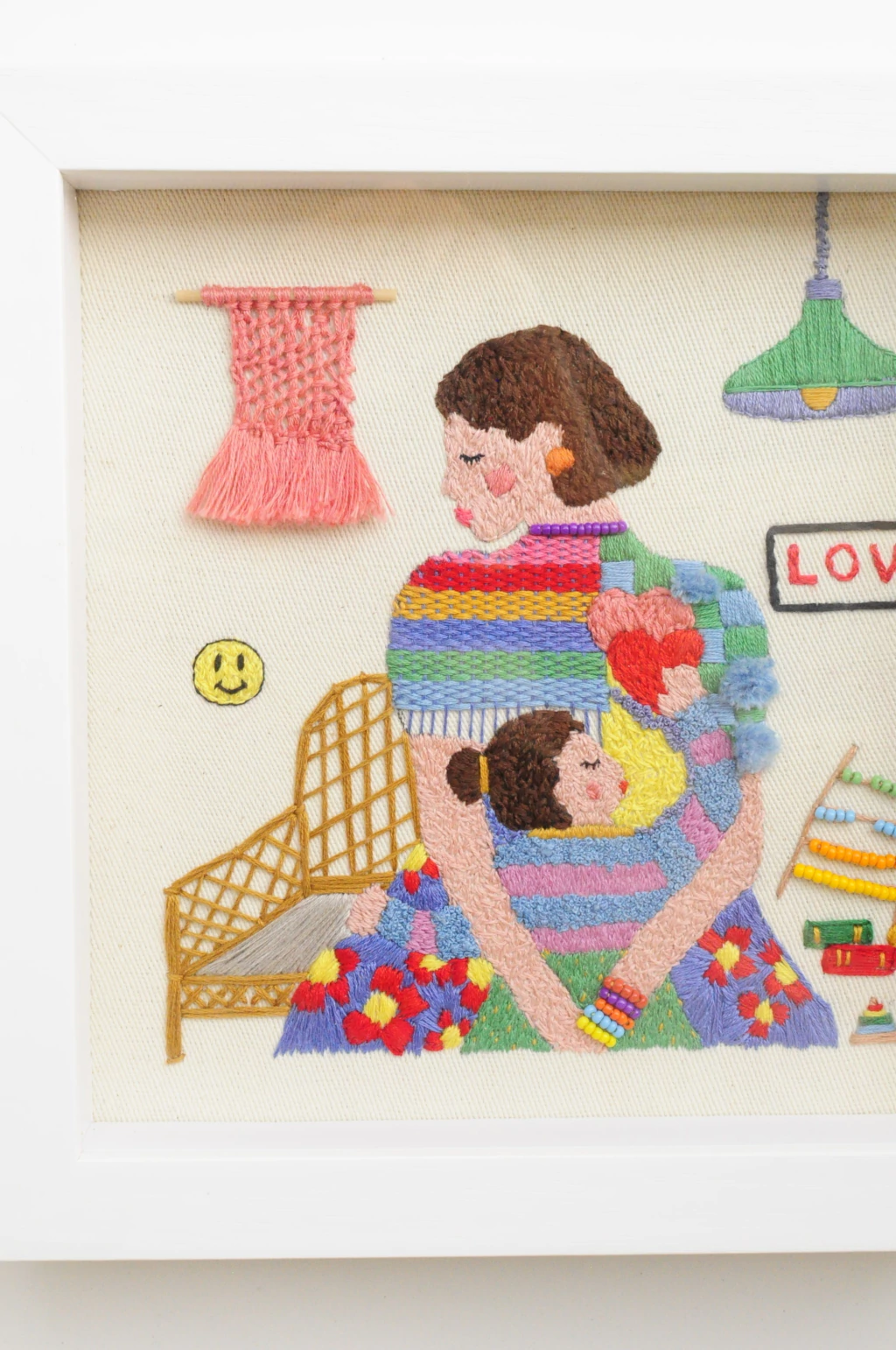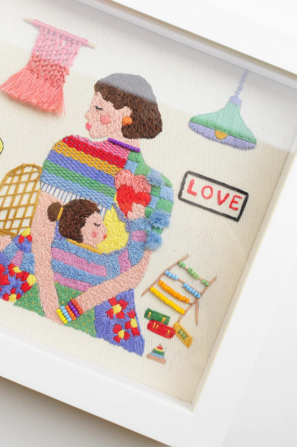 – aquele abraço de mãe e filha que é quase um milagre, tipo abraço de Deus, sabe? 💖 Este quadro é a prova material do amor mais puro e verdadeiro, com a delicadeza do bordado que transmite todo o afeto e segurança que um filho merece.