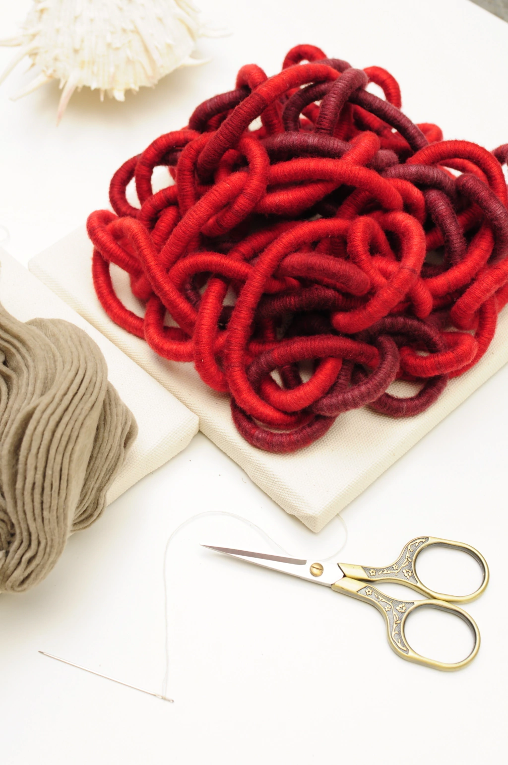 Prepare-se para dar um nó na sua decoração com o Quadro Entrelaçados! Feito com corda e fios de algodão, essa obra de arte é como um abraço para a sua parede.